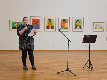 Ralf Emmerich mit seinen Fotografien der Künstler*innen