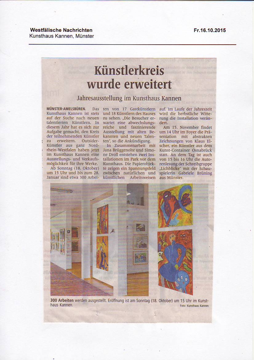 Künstler aus den Ateliers im Kunsthaus: Paul Berger, Wolfgang Brandl, Georg Brinkschulte, Marina Dohlen, Stephan Dürken, Anton Fliss, Michael Gude, Hans Georg Kastilan, Wilke Klees, Helmut Licznierski, Stephan Meishner, Klaus Mücke, Alfred Olschewski, Helmut Paus, Bernhard Pfitzner, Hubertus Roerkohl , Muammer Savran, Gerd Schippel, Hans Stockhausen, Matthias Stöppeler, Nicole Szlachetka, Walter Vieth