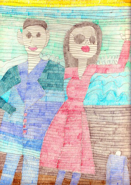 Die Ausstellung rahmen Erinnerungen an den Sommer. Auf der Wiese vor dem Kunsthaus stehen in leuchtenden Rottönen vier von Klaus Mückes "Frau Blume", in Holz gesägte Arbeiten des gleichnamigen Motivs, an dem er seit einigen Jahren arbeitet. Beim Eintritt in die Ausstellungshalle finden sich zarte, verträumte Naturcollagen von Simone Droll und gegenüber das junge Paar mit Sonnenbrillen von Helmut Paus, das bereits die Einladungskarte ziert.