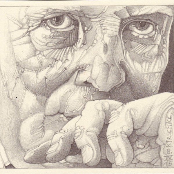 Im Rundgang durch die Ausstellung gibt es dann vieles zu entdecken, das vielleicht nicht sofort ins Auge fällt: Kleine Staubsauger aus Papier, die wie Parasiten die Wände hochklettern (Daniel Krüger); oder eine Landschaft mit Hirsch: große Malerei im kleinen Format (Silke Poremba). Erfrischend und nachdenklich sind die Simultancomics von Marcus Rauft, die den Blick böse ironisch auf die (Sprech-) Blasen moderner Alltagskommunikation in (psychiatrischen) Kliniken richten. Ingeborg Jung ist mit ihren neusten Arbeiten als Gastkünstlerin das zweite Mal dabei: Sie zeigt drei ihrer mystisch anmutenden und gleichwohl modernen Gesichter, deren Kreidefarben auf dunklem Grund wie "Unfarben" erscheinen und einen ganz eigenen Sog entfalten. Einen anderen Strich und eine andere Haltung hat Marina Dohlen, die akribisch genau die Physiognomie von (Vor-)Denkern des Surrealen nachzeichnet: Wir erkennen Sigmund Freud, André Breton und andere. Skrupulös wiederum beobachtet Karsten Kirschke die Oberfläche von Gesichtern, um sie in seinen Bleistiftporträts hyperrealistisch zu modellieren. Singulär sind die Gemälde von Robert Scholle, die auf eine erkennbare Handschrift verzichten und so unser Verständnis vom Verhältnis zwischen Kunst und Können, von echt und künstlich, hinterfragen.