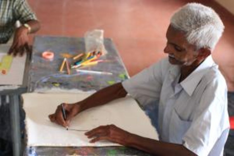 Die Bilder entstanden mit der Malerin und Designerin Ulla Dziedzioch aus Münster im Pratheeksha Bhavan, ein in den Bergen von Kattappana (Kerala, Südindien) gelegenes Pflegeheim, geführt von Schwestern und Brüdern des Ordens St. John of God. Fast jedes Jahr begleitete sie die dort lebenden Menschen, um mit ihnen zu zeichnen und zu malen – in einem geschützten Raum, frei von therapeutischer Absicht und offen für ihre Erfahrungen und Experimentierfähigkeiten.