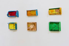 Hans-Werner Padbergs abstrakte Objekte erscheinen wie „schwerelose ‚Landschaften“. Das Farblose oder die leuchtende Palette der Industriefarben unterstreicht den künstlichen Charakter seiner Arbeiten.
