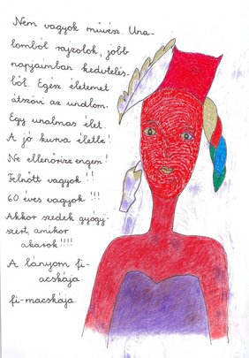 Mehr als 1.500 Zeichnungen von Maria Balassa sind untrennbar mit ihrer Lebensgeschichte und Genesung verbunden. Ihre Zeichnungen werden oft von imaginären oder historischen Figuren dominiert, die im Profil oder Halbprofil dargestellt sind – häufig starke Frauen – umgeben von autobiografisch inspirierten, poetischen Texten, die die Blockaden ihrer verschiedenen Lebenskrisen auflösen und nach ewigen, existenziellen Fragen suchen. Ihre Werke entstehen in der Regel auf einem Blatt Papier, auf dem sie einen Tintenklecks mit schwarzer Tinte platziert. Sie sieht in den Flecken „Visionen, Figuren“, die sie mit ihren Augen zeichnet, dann nimmt sie einen Marker und zeichnet die Konturen und Details der Figuren in einer Bewegung nach. Ihre Figuren färbt sie mit Buntstiften äußerst zart, aber in leuchtenden Farben. Beim Ausmalen erinnert sie sich an die Texte und unterbricht dann das Ausmalen, um sie mit Schulpärchenbuchstaben um die Zeichnungen zu schreiben. Ihre Schriften sind Gedichte, Gebete, Botschaften, Flehenschriften, Liebesbekundungen, wütende Briefe, Tagebuchnotizen und utopische Geschichten, in denen sie die emotionale Intensität ihres inneren Lebens mit der universellen Suche nach dem Sinn des Lebens verbindet.