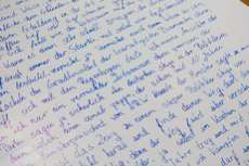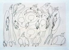 Weisen einige handschriftliche Arbeiten aufgrund des ausgeprägt individuellen Schriftbilds bereits eine Nähe zur Handzeichnung auf, so ergibt sich eine Parallele auch im freien assoziativen Fluss, der den Entstehungsprozess der Texte kennzeichnet. Stimmungen, Gedanken und Gefühle werden in den Schriften genauso unmittelbar umgesetzt, wie es in den „gekritzelten“ Zeichnungen allein durch die Bewegung der Hand geschieht.