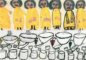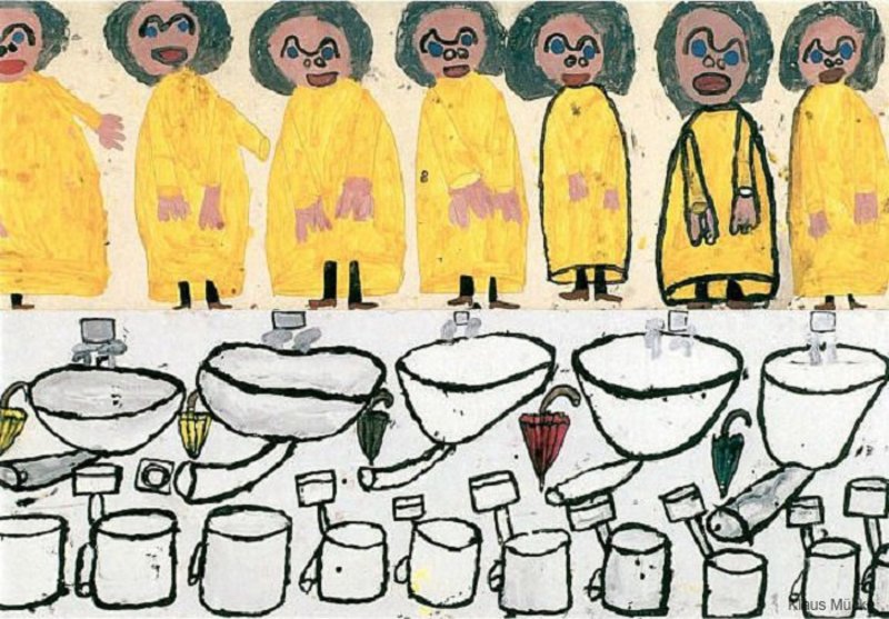 Klaus Mücke wurde 1943 in Kiel geboren und wuchs in einem von katholischen Ordensschwestern geführten Kinderheim auf. Seit 1970 lebte der Künstler in einer Wohngruppe auf dem Alexianer-Campus, wo er im Zuge der Kunsttherapie und später im Kunsthaus eine große Zahl an Motiven und Werken schuf. Seine Bilder fanden viele Käufer und Sammler, besonders die Zeichnungen der „Frau Blume“.