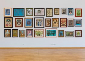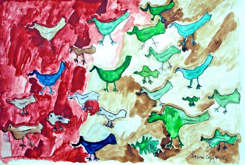Die Bilder von Pellegrino Vignali, der als Bauer in einem abgelegenen Dorf in den italienischen Bergen des Apennins lebte, führen uns auf den ersten Blick zurück an diesen Anfang. Sie handeln von Tieren und Menschen, von Frauen und Männern, von Pflanzen und Zeichen, die er zu kleinen symbolischen Kosmen ineinanderfügt, ähnlich wie in der ältesten Kunst der Felszeichnung und Höhlenmalerei. „Vignalis Bildsprache ist genial einfach und dadurch zu höchster Komplexität des Ausdrucks fähig. Darin gleicht sie der Sprache der Elementarzeichen, die so alt ist wie die Menschheit selber. Vignali konnte die Inhalte seiner Bilder nicht erklären er malte sie.“ (Museum Haus Cajeth). Zugleich sind es moderne Bilder, subjektiv in ihrer symbolischen Erzählung, frei in der ornamentalen Ausgestaltung und Verknüpfung der Muster, sensibel und überraschend in der Farbigkeit. „Graphische Abstraktion bestimmt den Charakter der Bilder, in denen die kräftigen, leuchtenden Farben flächig aufgetragen sind. Es gibt keine räumliche Tiefe, weil kein bestimmter Ort, kein konkretes Geschehen gemeint ist “.