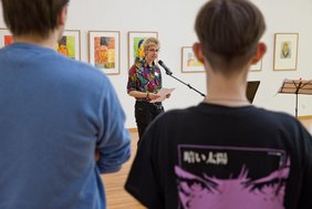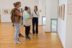 An verschiedenen Tagen können Sie spannende Informationen zu den Werken und Künstler*innen erfahren. Dazu finden Führungen mit Joseph Lange, Masterstudent an der Universität Münster und Ko-Kurator der Ausstellung , statt. In der Woche sind ebenfalls Führungen ab 6 Personen nach Vereinbarung mit Lisa Inckmann, Leiterin des Kunsthaus, möglich. Alle Führungen sind 30-45 Minuten lang und gratis.