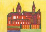 Franz Huestedde sagte eines Tages: „Ich komme jetzt auch zum Malen zu dir!" Ganz seiner Art entsprechend suchte er sich seinen Weg zum eigenen Ausdruck. Ein Hauptmotiv kristallisierte sich schnell heraus: Den gelernten Zimmermann interessierten insbesondere Bauwerke. Es entstand eine Fülle von Bildern mit Häusern und Palästen, phantastische, selbstentworfene und von der Realität ausgehende.