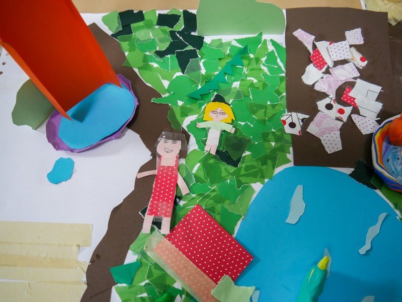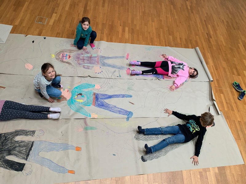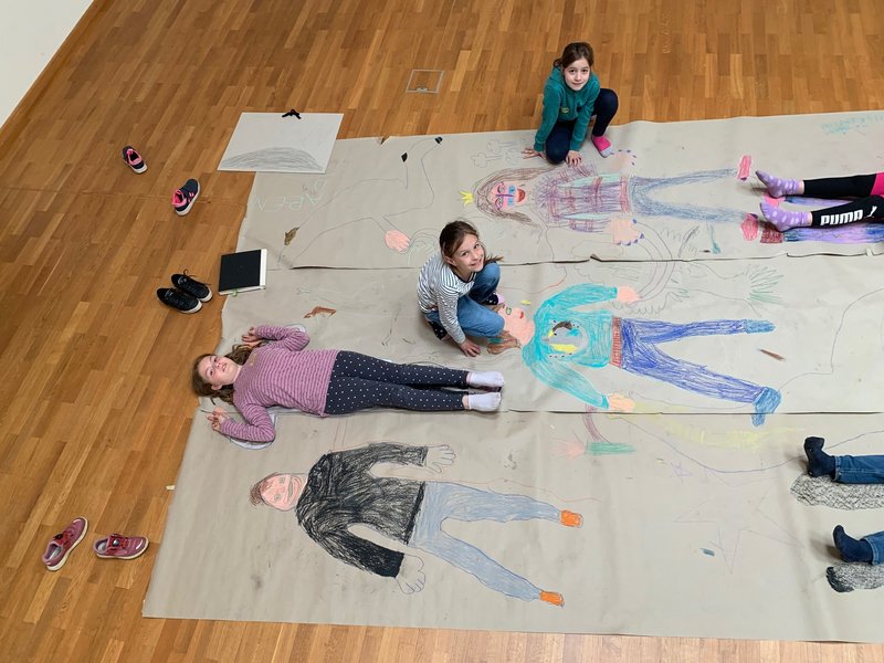 Während des Projekts konnte die eigene Arbeit tiefer durchdacht und gleichzeitig die Zusammenarbeit mit anderen erfahren werden. Die Kinder lernten eine neue Art der Interaktion mit Materialien, die wir oft um uns herum finden. Wir haben unsere Lieblingswörter ausgetauscht und gezeichnet. Wir haben uns auf eine große Papierrolle gelegt und unsere Körper darauf gemalt.- Es geht darum, zu lernen, „zusammen zu sein“.
