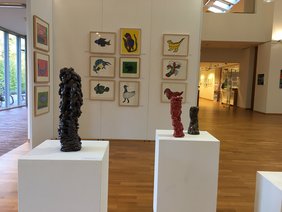 The exhibition is prepared by young students and interns, who not only begin to gather practical experience in exhibition planning and development, but also contribute to new and exciting ideas on curation. Visitors can look forward to seeing a vast array of contemporary art, Outsider Art, Art Brut and alternative art forms. You can explore the expressionistic, colorful portraits by Georg Brinkschulte, one of which became the face of the exhibition. A major theme in this year’s exhibition is animals, which can be seen in Wolfgang Brandl’s watercolors and Michael Gude’s prints. Color is celebrated through the artworks by Hermann König, Paul Berger, Alfred Olschewski, Grischan and Sven Redlich. Many drawings display a confident use of line, to include those by Gabriele Winkler and Stefan Reimer. In addition, there are many fascinating sculptures made out of wood, metal, and clay, such as ceramic heads by Nicole Szlachetka and the wire insects by Markus Meurer. It is especially exciting for us to present Mark Steven’s paintings from Australia and experimental work from Art Burt Project Cuba.