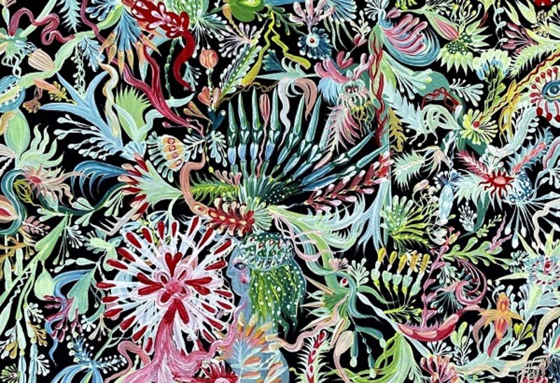 So you can lose yourself in the fantastic worlds that Stefan Tiersch meticulously create. He draws and paints dense structures with thin lines, in which one can repeatedly discover fairytale plants, animals and mythical creatures. Lisa Urban is once again represented in the exhibition, captivating with her graphically impressive monkey figures. But also abstract artists like Alfred Olschewski are represented. Olschewski's works are color fields that develop an unexpected impact through the artist's skilful, structured combination and captivate the viewer.