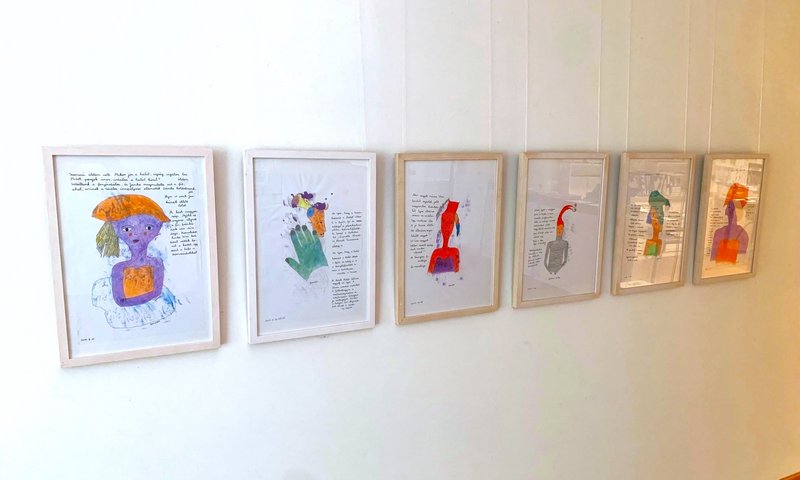 More than 1,500 drawings of Maria Balassa are inseparable from her life story and recovery. Her drawings are often dominated by imaginary or historical figures depicted in profile or semi-profile - often strong women - surrounded by autobiographically inspired, poetic texts that resolve the blockages of her various life crises and ask about eternal, existential problems. Her creations are usually made on a sheet of paper, on which she places an ink spot with black ink. She sees "visions, figures" in the spots, which she draws with her eyes, then takes out a marker pen and draws the contours and details of the figures with one movement. She colors her figures with colored pencils extremely delicately, but with bright colors. While coloring, sshe remembers the texts, and then he interrupts the coloring and writes them around the drawings with school pearl letters. Her writings are poems, prayers, messages, pleas, confessions of love, angry letters, diary-notes and utopian stories, in which she combines the emotional intensity of her inner life with the universal search for the meaning of life.