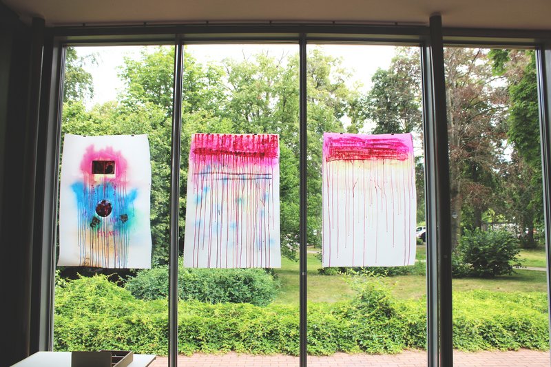 The exhibition "Paper learns to fly" shows works that have been developed in the study of the material paper, ranging from watercolors, to self-made and shaped paper, to flying objects of all sizes - to be seen and heard also become lampshades and book objects, paper music and three-dimensional objects where paper has been stabilized and transformed by kinking and folding.