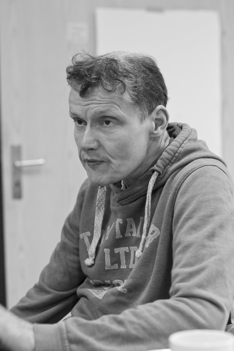 Roger Röggener lebt seit 1980 im Alexianer-Wohnbereich. Seit 1988 wird er mit einigen kürzeren Unterbrechungen, ergo- und kunsttherapeutisch betreut. Er besucht den Förderbereich der Alexianer-Werkstätten.